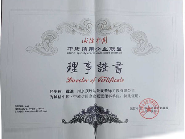 中質(zhì)信用企業(yè)聯(lián)盟理事證書